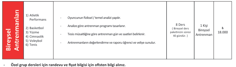 4- Sezon içerisinde , okul etkinliklerinden dolayı kurumun 4 ders iptal etme hakkı saklıdır. İptaller aidat ödemelerine tabii değildir.