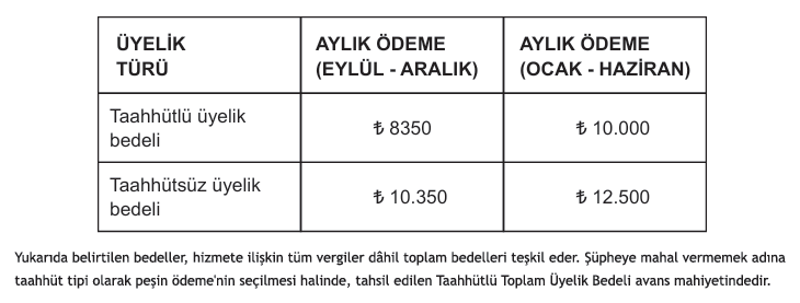 13 - Taahhütlü üyeliklerde, sporcudan kaynaklı iptal durumu söz konusu olduğunda sporcunun katılım sağladığı aylar taahhütsüz tutar üzerinden hesaplanıp işleme alınacaktır.